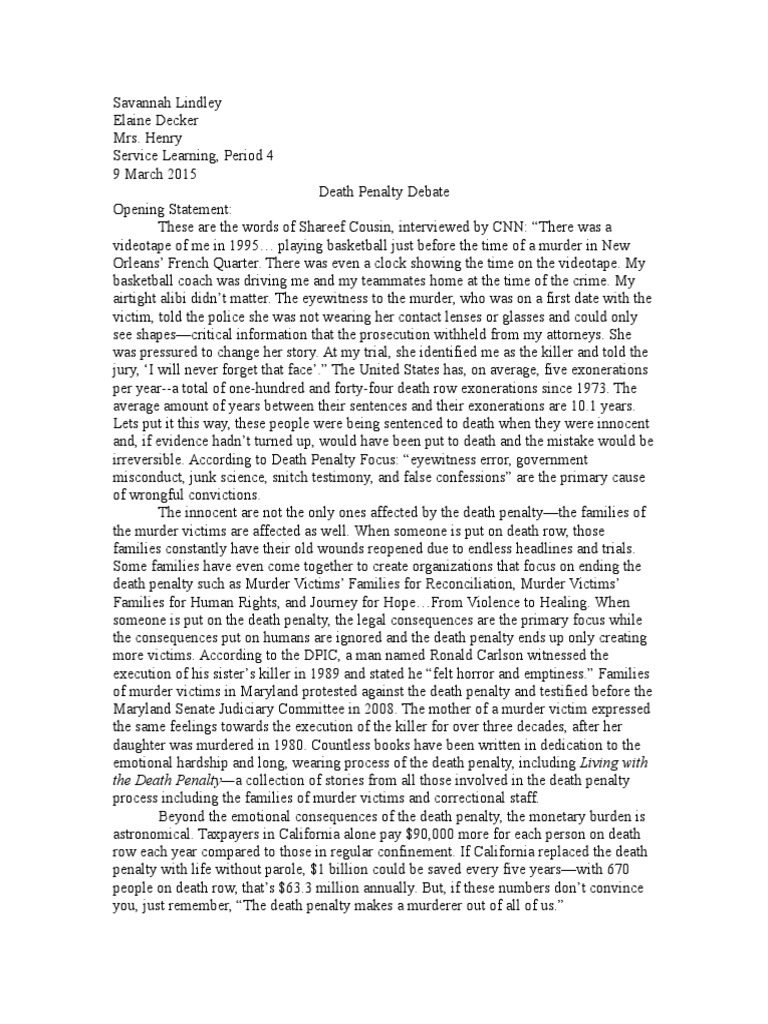 In March, the high court heard oral arguments for death row inmate David L. Nelson, one of 15 condemned prisoners to challenge the legality of the lethal The death penalty is a tricky subject to navigate because there are so many differing opinions. Most seemingly valid and justifiable on a small scale. However, if we are death penalty in high school papers look at these cases in a larger perspective we begin to notice the injustices that Though some of the states do not have executions by death, the sentence has remained to be contralateral.